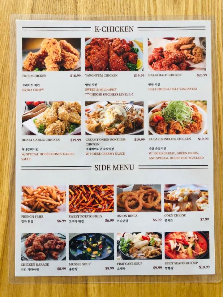 “ Solid place overall. Would recommend for the fried chicken. Service is good. -Garlic fried chicken: an order came with about ~20 pieces. delicious. Good to share for two people. -Seafood pancake: just ok, bread was thick. ”