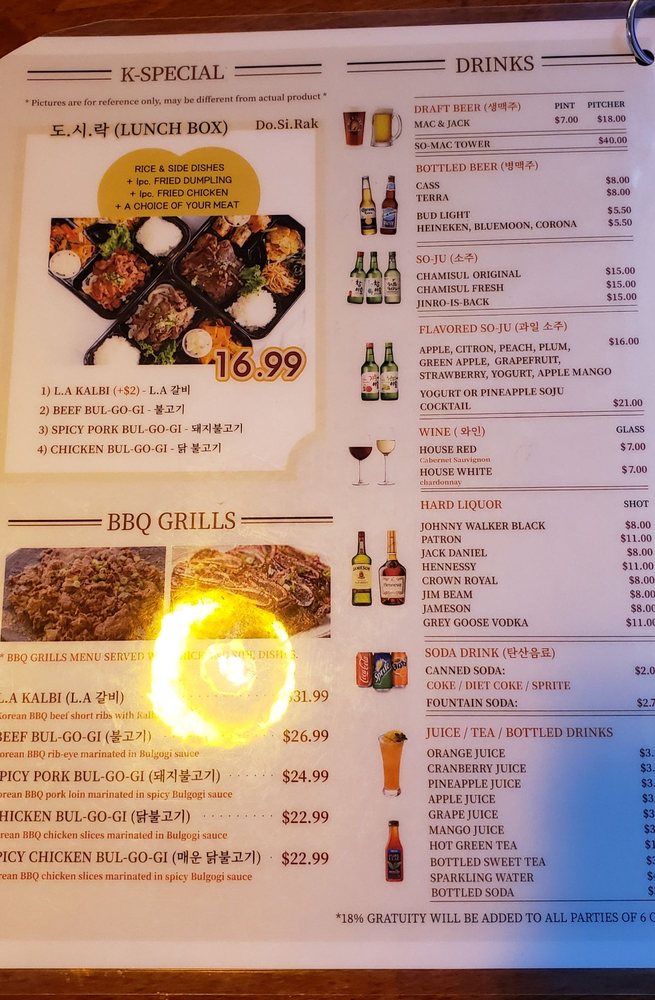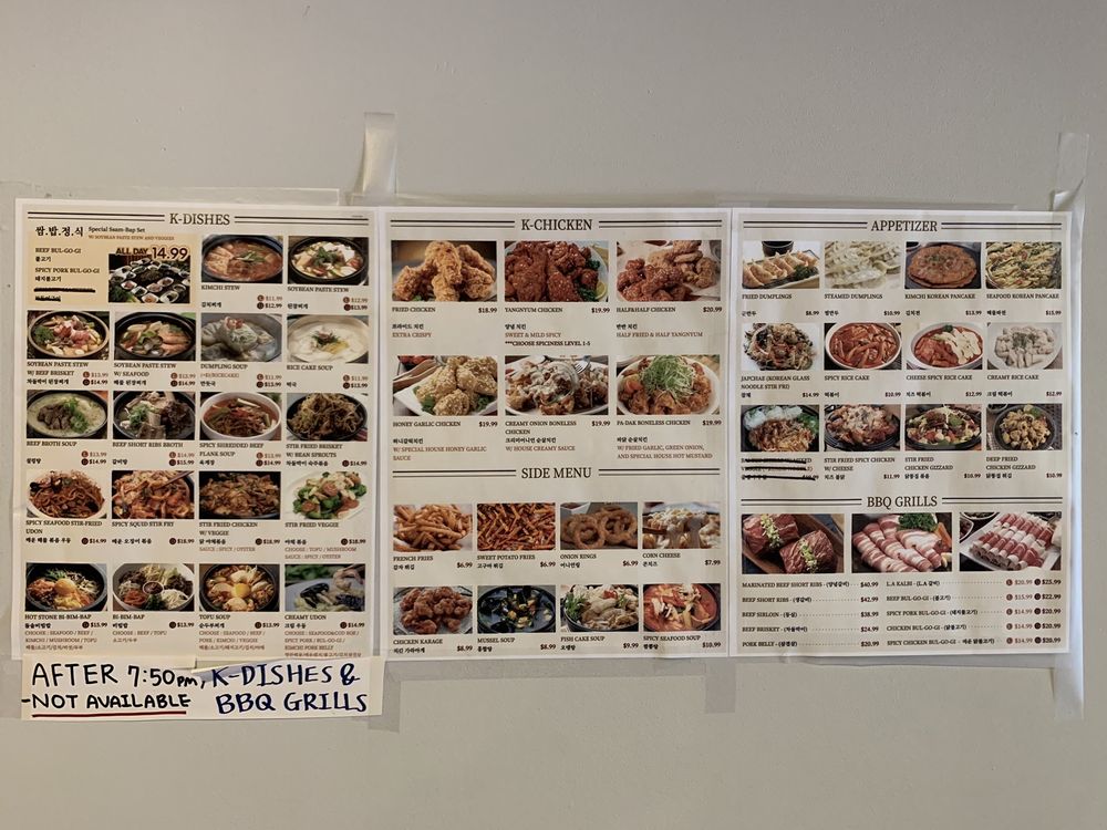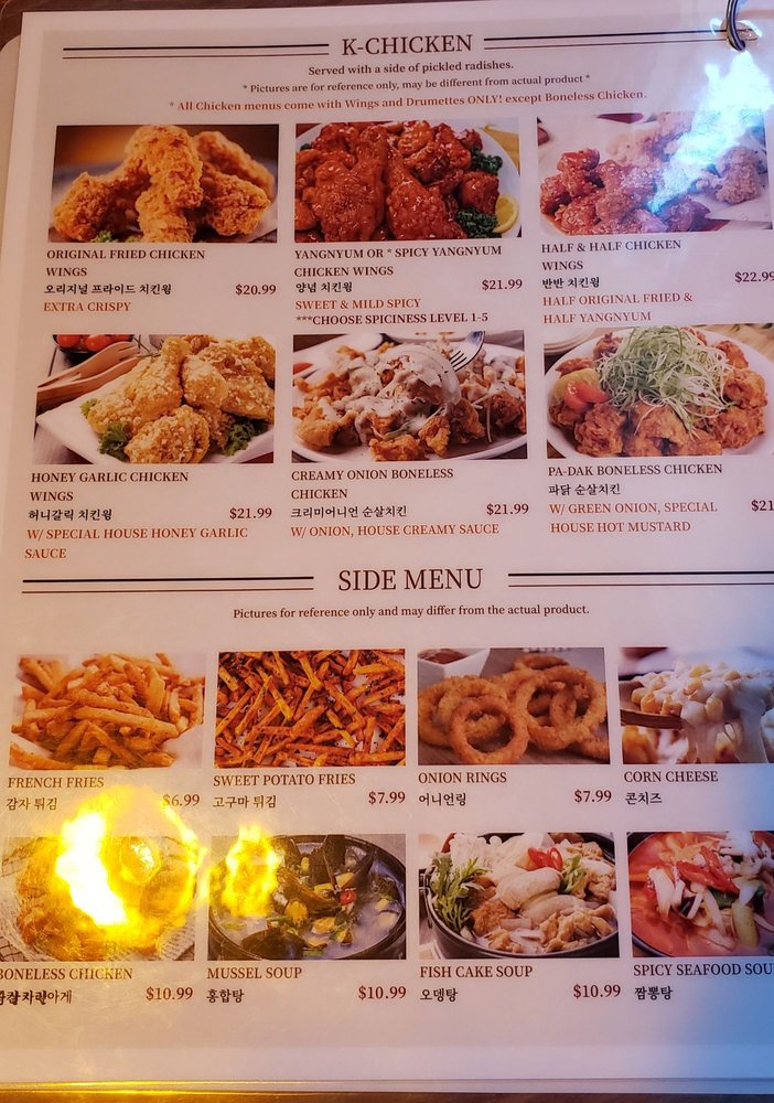 “ I've ordered out before. But finally went in to dine. Service was a little slow. The place was nice. It was kind of funny to see k drama playing on the tv. I love the BanChan with crispy chicken, chefs kiss. Like how do they make the chicken so crispy. It's so delicious. ”
